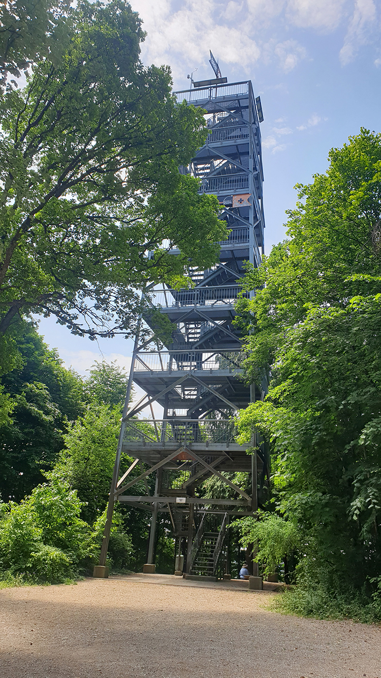 Die Aussichtsplattform erreicht man über 137 Treppenstufen und sechs Zwischenpodeste.