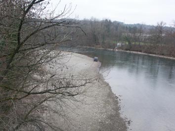 | Die Kiesbank beträgt zweidrittel der Reussbreite. | |